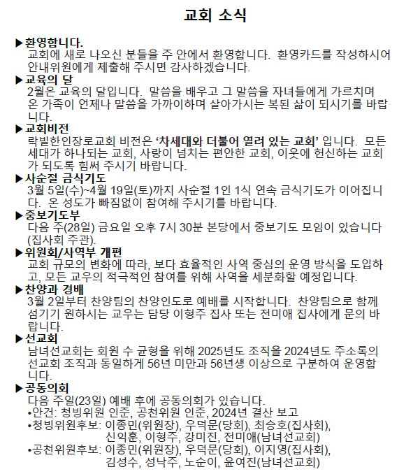 2025³â 02¿ù 16ÀÏ ÁÖÀÏÁÖº¸