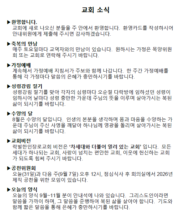 2025³â 08¿ù 31ÀÏ ÁÖÀÏÁÖº¸