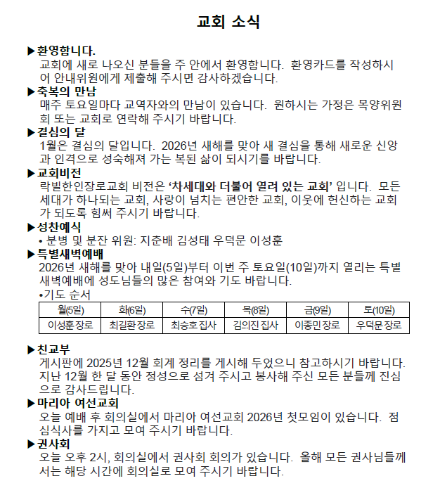 2026³â 01¿ù 04ÀÏ ÁÖÀÏÁÖº¸