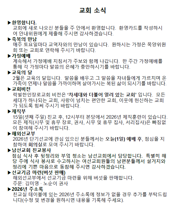 2026³â 02¿ù 01ÀÏ ÁÖÀÏÁÖº¸