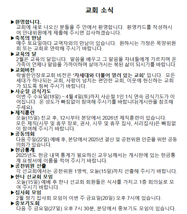 2026³â 02¿ù 15ÀÏ ÁÖÀÏÁÖº¸