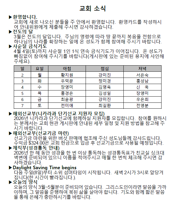 2026³â 03¿ù 01ÀÏ ÁÖÀÏÁÖº¸