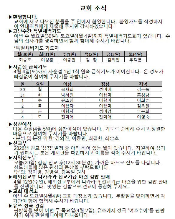 2026³â 03¿ù 29ÀÏ ÁÖÀÏÁÖº¸